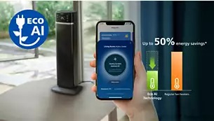 اولین هیتر برقی که از هوش مصنوعی برای صرفهجویی در مصرف انرژی هنگام گرم کردن اتاق استفاده میکند. فناوری Eco AI فیلیپس دمای اتاق شما را تنظیم میکند، عادات استفاده را تجزیه و تحلیل میکند و محیط اطراف را برای بهینهسازی مصرف انرژی رصد میکند. کافیست حالت Auto+ را در برنامه Air+ فعال کنید تا ویژگیهای بیشتری را کشف کنید و از راحتی شخصیسازی شده برای صرفهجویی در مصرف انرژی تا 50٪ لذت ببرید.